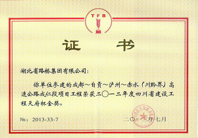 2012年四川省建設(shè)工程天府杯金獎(jiǎng)