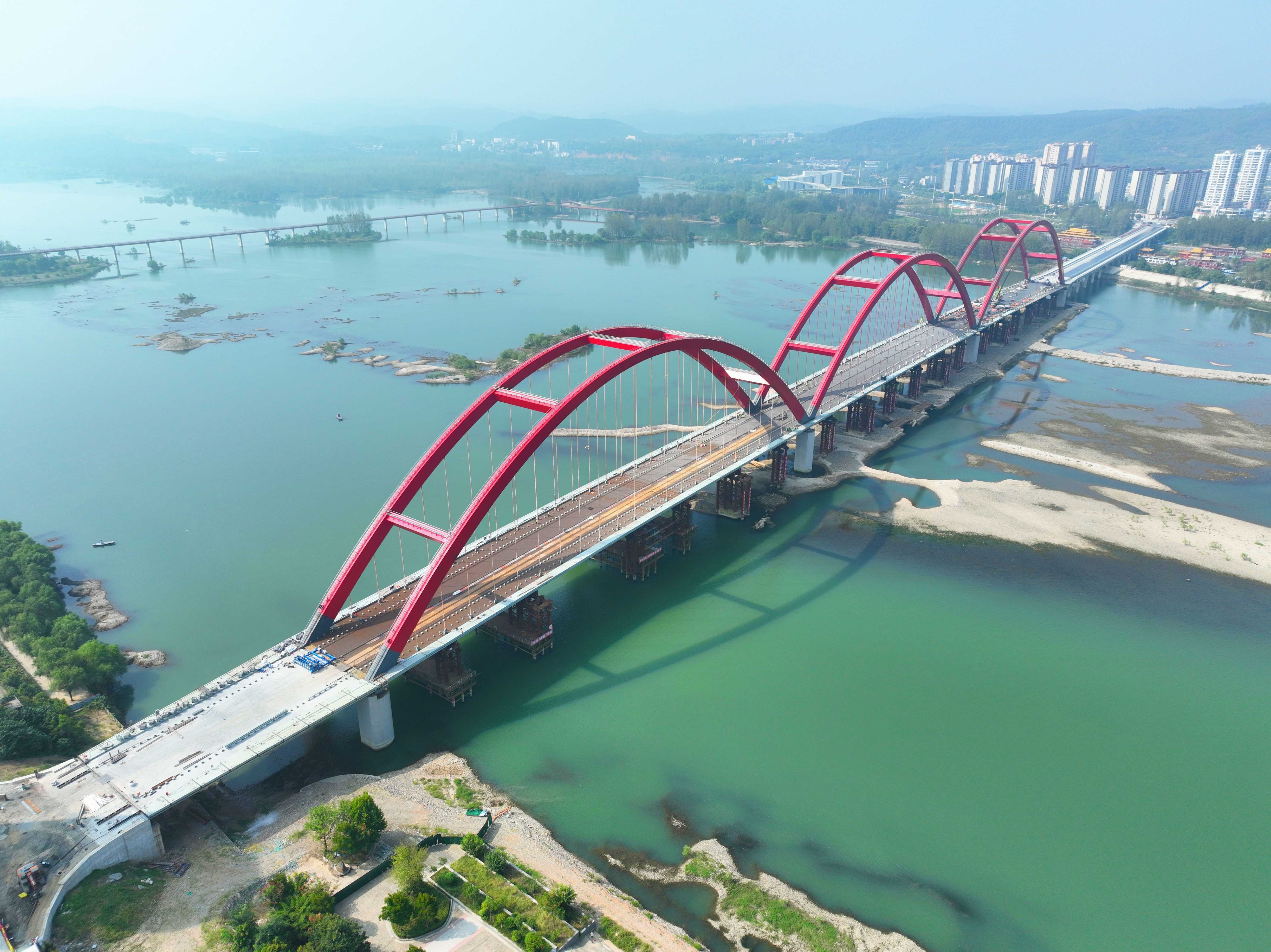 是國內(nèi)最長的三跨連續(xù)鋼箱系桿拱橋。