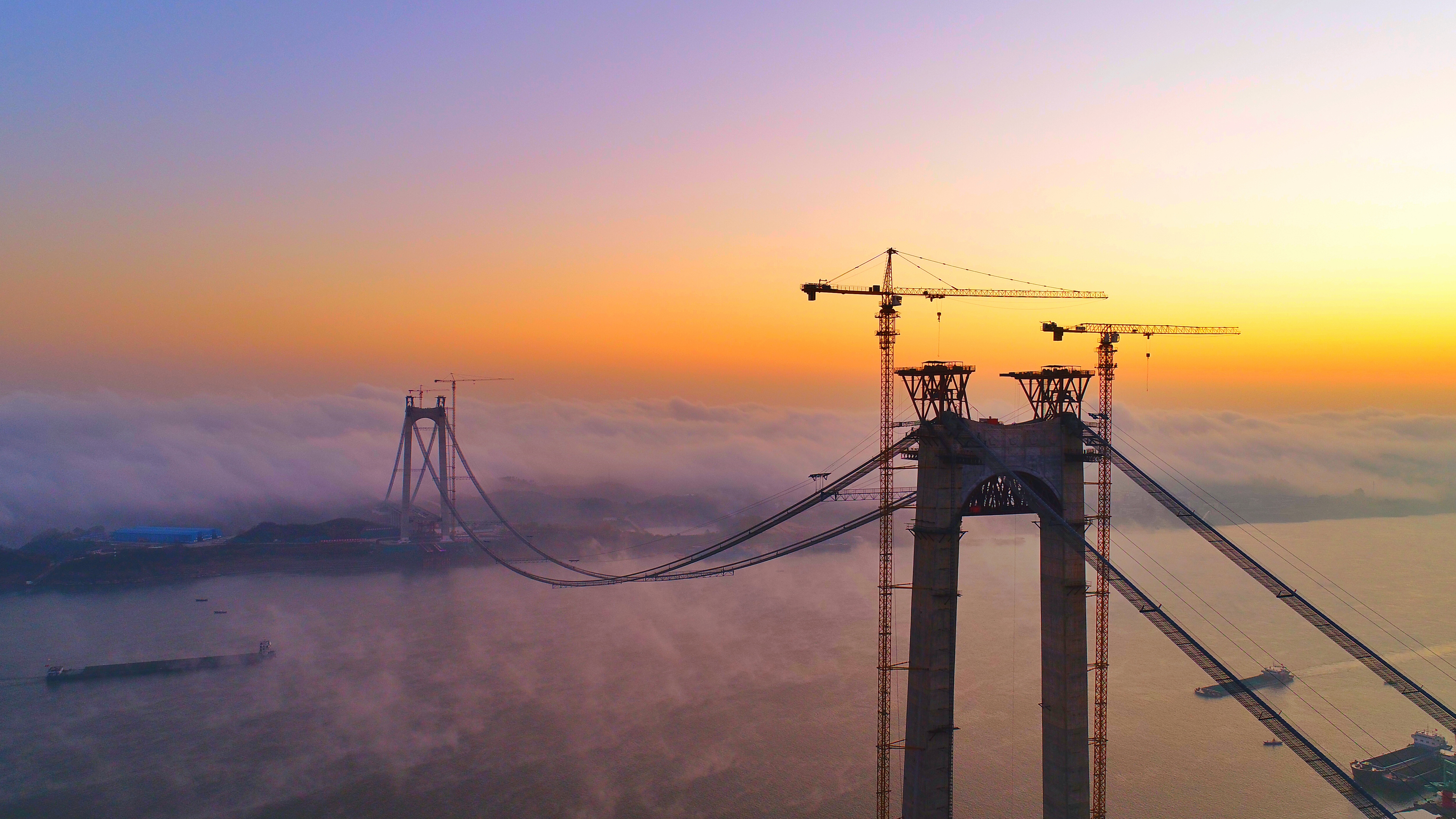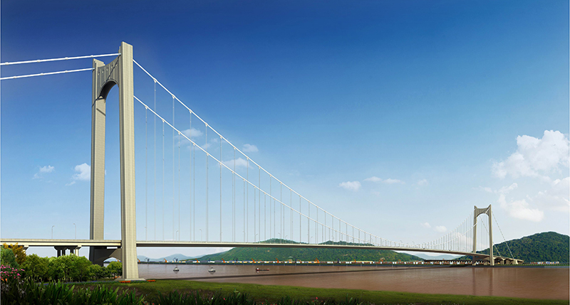 黃石棋盤洲長江公路大橋是武漢城市圈高速公路的重要組成部分,該項目起點位于陽新縣太子鎮(zhèn)樟樹灣村,順接擬建的黃咸高速公路大冶至陽新段,穿過規(guī)劃棋盤洲港區(qū)后跨越長江進入黃岡市蘄春縣境內(nèi),在韓家灣與G50滬渝高速全互通相交,終點接滬渝高速。路線全長22.237km,黃石側(cè)接線14.247km,長江大橋3.728km,黃岡側(cè)接線4.262km。本項目投資估算總金額為39.363億元,建設(shè)總工期為48個月。2014年10月,湖北路橋中標棋盤洲長公路大橋建設(shè)工程項目,2020年6月5日,大橋?qū)崿F(xiàn)順利合龍。