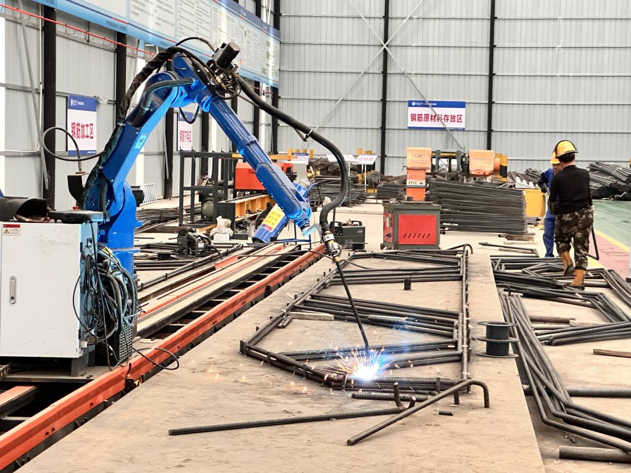 項(xiàng)目大力推行“智能制造”,鋼筋加工由自動(dòng)彎箍機(jī)、滾焊機(jī)、焊接機(jī)器人等智能工裝精準(zhǔn)完成,同時(shí)著力打造智慧拌合站與數(shù)智梁場(chǎng)?;炷涟韬驮谌鞒瘫O(jiān)控下實(shí)現(xiàn)質(zhì)量閉環(huán),每一片預(yù)制梁從澆筑到養(yǎng)護(hù)的生產(chǎn)數(shù)據(jù)流均被物聯(lián)網(wǎng)自動(dòng)采集綁定,為每個(gè)構(gòu)件賦予唯一的“數(shù)字基因”,使質(zhì)量追溯貫穿全生命周期,實(shí)現(xiàn)從“工廠制造”向“數(shù)字智造”的深度轉(zhuǎn)型。